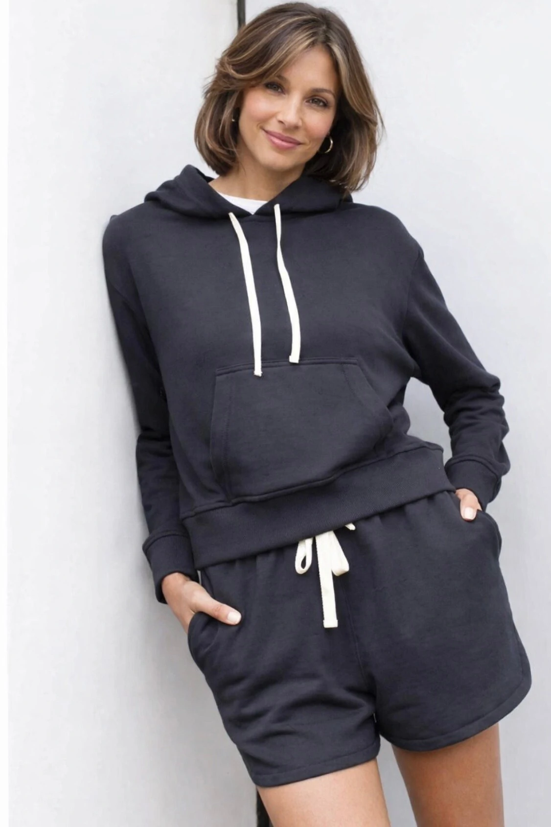 Confeccionado em moletom de alta qualidade, o conjunto possui toque macio, encorpado na medida certa e extremamente confortável. O shorts oferece liberdade de movimento e caimento perfeito, enquanto a blusa com capuz traz um visual moderno e despojado, ideal para composições urbanas e atuais.