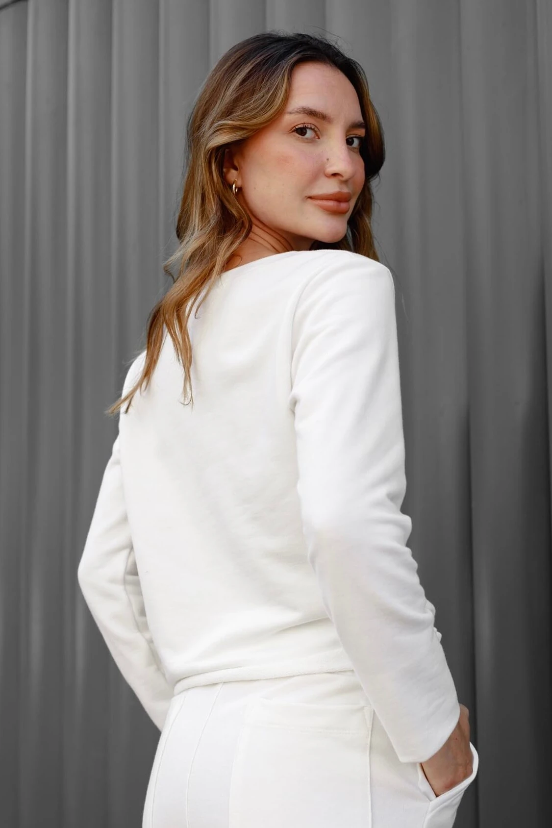 Apresentamos a sua nova peça favorita: a Blusa de Moletom Cropped Essencial. Desenvolvida para a mulher moderna que não abre mão de conforto e estilo, esta blusa é a base perfeita para infinitas possibilidades de looks, em especial, com calças cintura alta