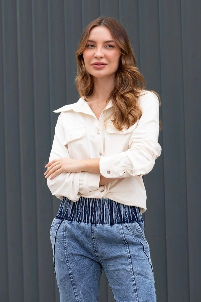 Calça na malha jeans com lavagem diferenciada, trazendo um toque moderno e despojado.