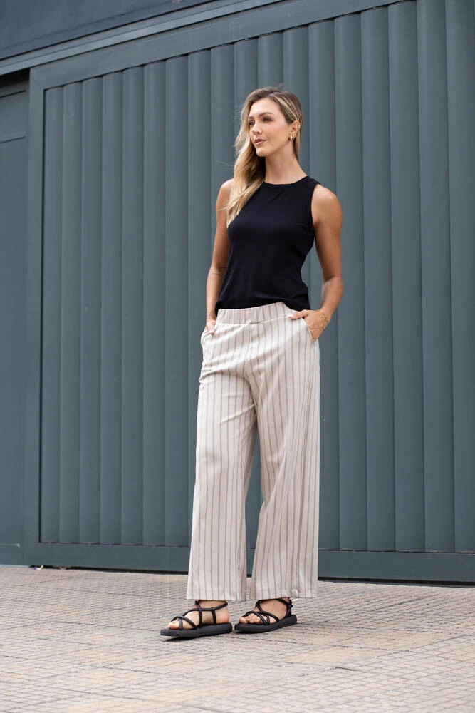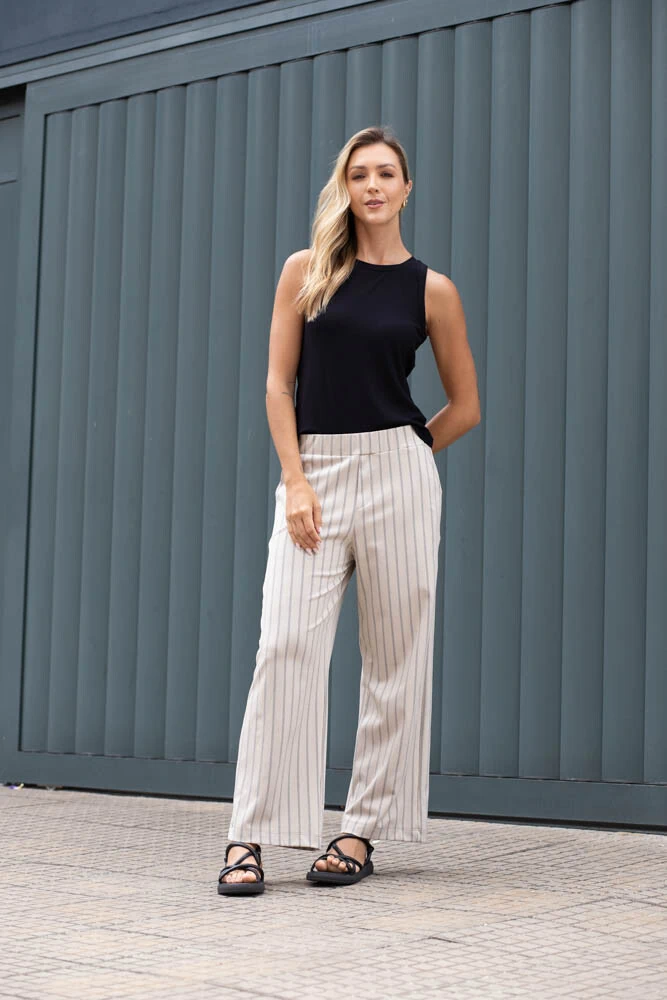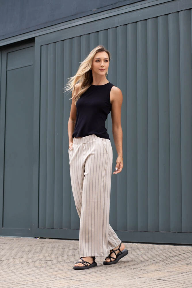 Essa calça da linha Office verão é a prova de que dá pra trabalhar bem vestida sem abrir mão do conforto. Leve, fresca e com caimento impecável, ela acompanha a rotina dos dias quentes com muito charme. As listras verticais alongam e afinam a silhueta, trazendo um visual elegante e atual. Uma peça prática, versátil e perfeita para quem quer se sentir confiante do começo ao fim do dia.